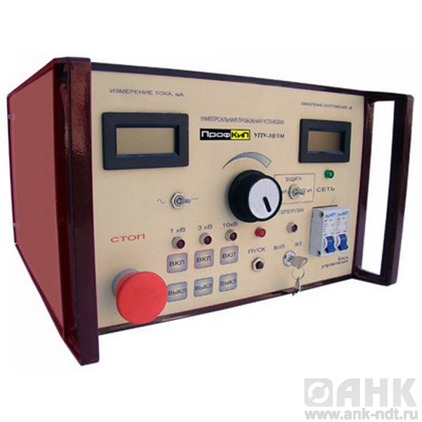 Установка пробойная универсальная ПРОФКИП УПУ-10/1М предназначена для испытания изоляции электротехнического оборудования и материалов переменным синусоидальным напряжением частотой 50 Гц и выпрямленным напряжением отрицательной полярности, регулируемым в пределах от 0 кВ до 10 кВ с выходным током до 100 мА.