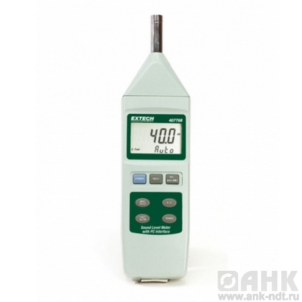 Цифровой измеритель шума с ПК интерфейсом Extech 407768 с точностью измерений по стандартам ANSI и IEC 651. ПК интерфейс RS-232. Автоматическое/ручное переключение диапазонов с 30 до 130dB в трех уровнях размером 50дБ. Большой цифровой дисплей с разрешением 0,1дБ.