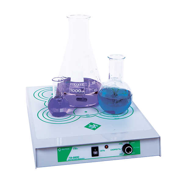 Перемешивание жидкостей одновременно в нескольких сосудах (до 9 шт) при помощи вращающихся в переменном магнитном поле якорей. Облегчает работу при большом количестве проводимых анализов, повторений, параллельных проб.