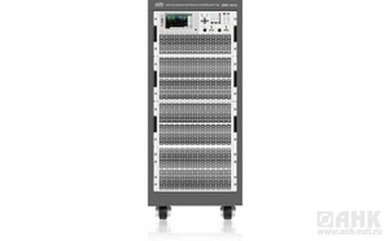 Источник питания постоянного и переменного тока (1ф/3Ф). Выходное напряжение постоянное 50…424 В, разрешение 0,01 В, макс ток в диапазоне 50…212 В, 18А, в диапазоне 50…424 В, 9А. Выходное напряжение переменное 1…150 В/2…300 В (10…5000 Гц), с разрешением 0,01 В; макс ток в диапазоне 1…150 В, 108 А пик 1ф / 36 А 3ф, в диапазоне 2…300 В, 54 А пик 1ф / 18 А 3ф. Мощность 4500 Вт / 1500 Вт на каждую фазу; фазовый угол 0…360°; коэф гармоник не более 0,5%; одновременная цифровая индикация В-А-Гц-cosф; защита от перенапряжения, перегрузки по току, по мощности, от перегрева. Интерфейсы USB, LAN, GPIB, RS-232, CAN. питание от сети 380 В 3ф.