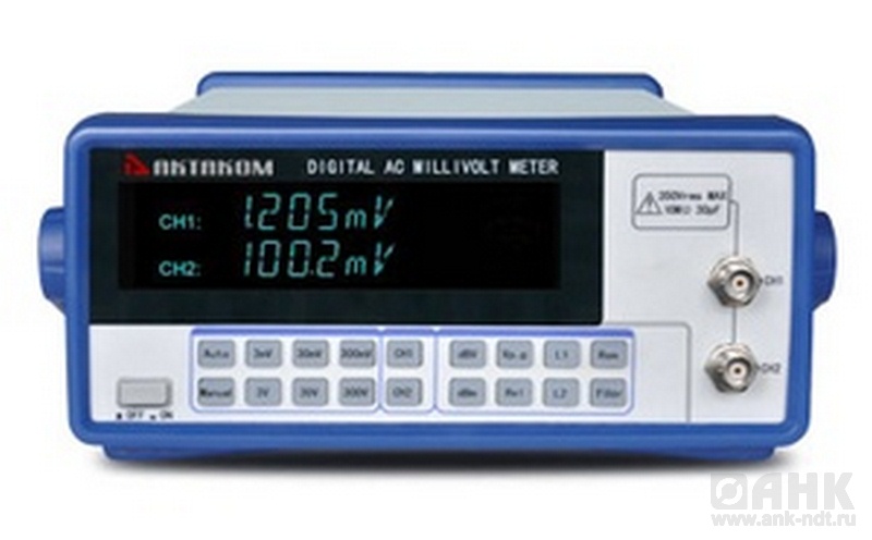 2 независимых канала. Разрядность до 3 1/2. Измерение переменного напряжения (mV, V) в диапазоне 50 мкВ…300 В (5 Гц…3 МГц), мощности (-83 дБм...52 дБм ). Индикация в dBmV, dBV, Vp-p. Наилучшее разрешение 0,001 мВ. Базовая погрешность 1,5%. Автом. и ручной выбор диапазона, Интерфейс RS-232, поддержка команд SCPI. ВФД дисплей. Габаритные размеры 106х260х375 мм. Вес около 3 кг