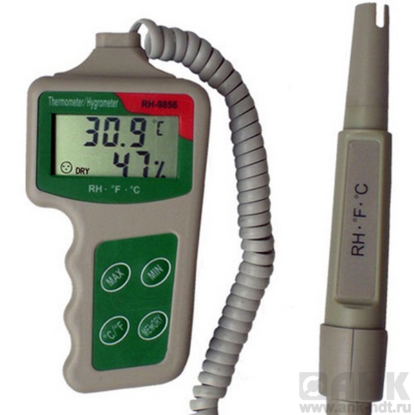 Гигротермометр KL-9856 для регулярных замеров температуры газовых сред, преимущественно воздушных с высоким разрешением до 0.1℃. Также одновременно замеряется влажность с разрешением 5%.