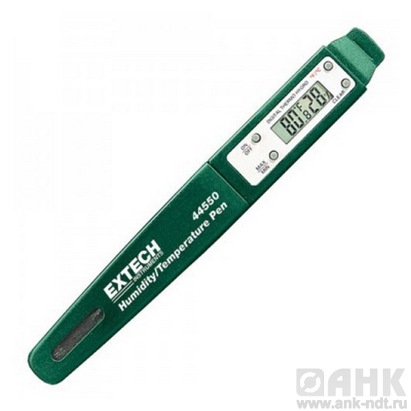 Прибор в форме ручки для измерения влажности и температуры Extech 44550, прибор имеет компактный размер, запись максимальных и минимальных показателей. ЖК дисплей для одновременного отображения температуры и относительной влажности. Возможность переключения значений температуры с С на F.