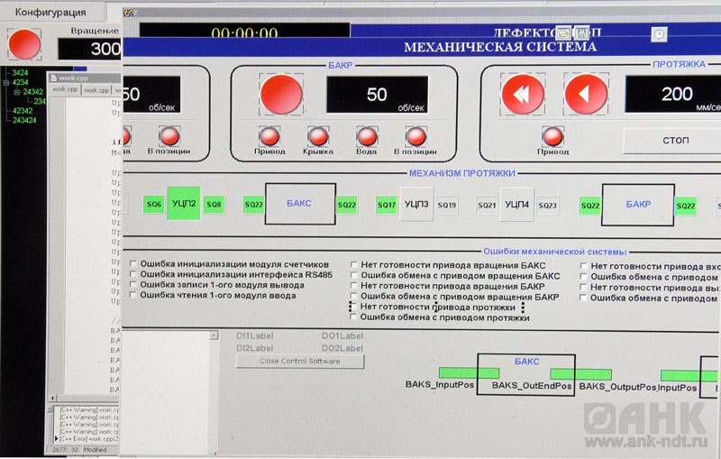 Информация от измерительной части поступает в реальном времени на управляющую ЭВМ и выводится на экран в виде ленты электронного самописца. Управляющая ЭВМ расположена в стойке регистрации. Программное обеспечение, работающее под управлением операционной системы Windows XP, выполняет задачи отображения и регистрации результатов контроля измерительной части установки, ведёт электронный журнал работы установки, а так же сохраняет на жесткий диск результаты УЗ контроля в виде протоколов для дальнейшего просмотра и вывода на печать.