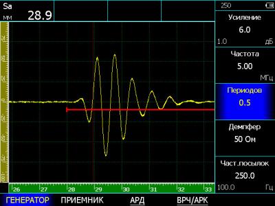 положительная или отрицательная полуволна, полное, радиосигнал (во всем диапазоне развертки), B-scan, C-скан |