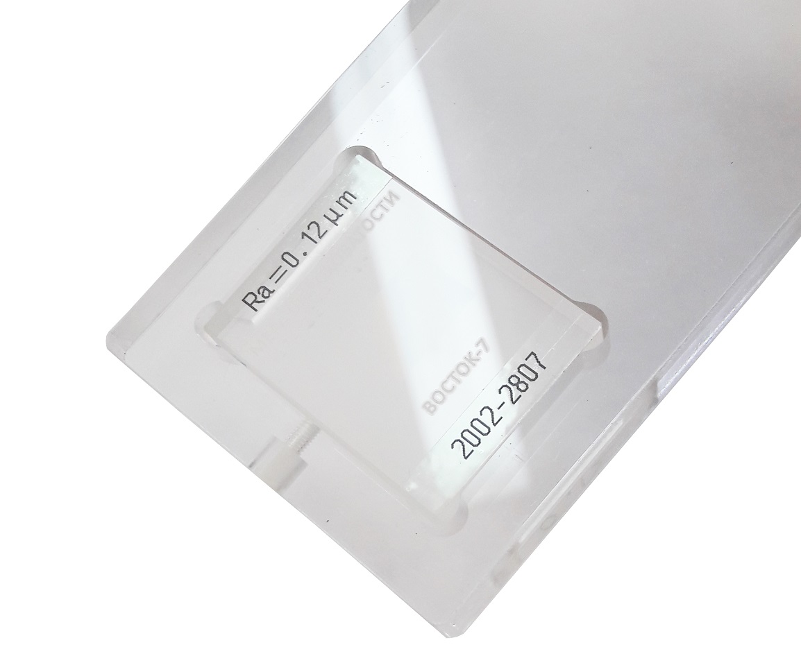 Меры шероховатости поверхности В7-МШ представляют собой пластинки из ПВХ, на которых методом масочного травления сформирован периодический трапецеидальный профиль. Пластинки вклеены в пластиковое прозрачное основание.