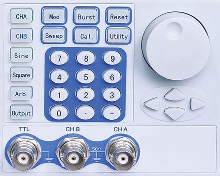 Для ввода цифровых параметров на панелях всех генераторов имеется три группы органов управления: курсорные кнопки (со стрелками), вращающийся регулятор параметров и цифровая клавиатура.