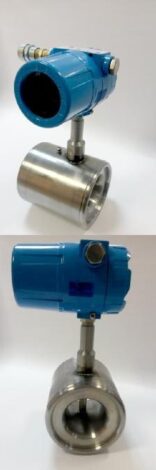 Конструктивно датчик представляет собой моноблок, состоящий из цилиндрического корпуса, в проточной части которого размещены ПА, и электронного блока, соединённого с корпусом через полую стойку, залитую компаундом. Торцевые поверхности корпуса имеют овальную или плоскую форму (в зависимости от исполнения) под фланцевое соединение типа «сэндвич».